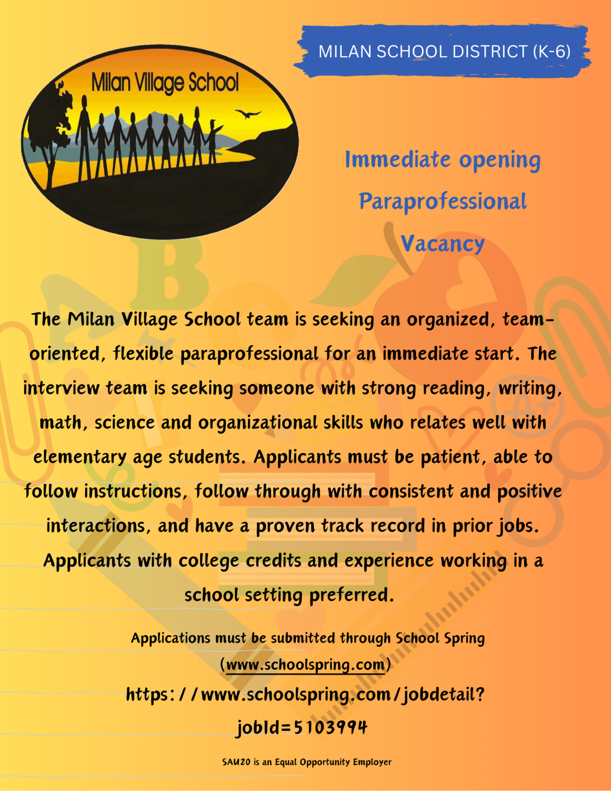 We believe education is a shared community responsibility. Our mission is to foster individual worth, promote lifelong learning, meet student needs, ensure equal opportunities, and prepare students for success. We engage parents and the community, maintain open communication, and strive to prepare students to lead meaningful, responsible lives.